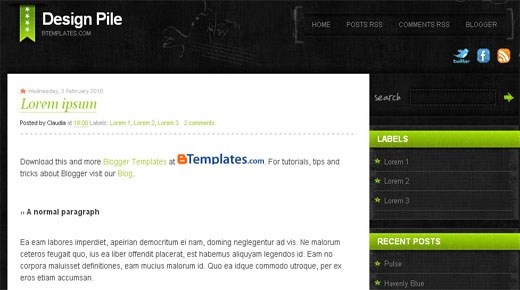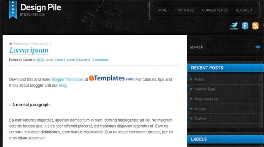 Design Pile is a an excellent series of Blogger xml templates that comes in Pink, Blue and Green. Converted from wordpress this series of templates have a handy artwork and very clean looks. You definitely will love them.